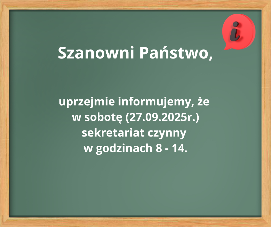 Godziny pracy sekretariatu w sobotę 27.09.2025r.