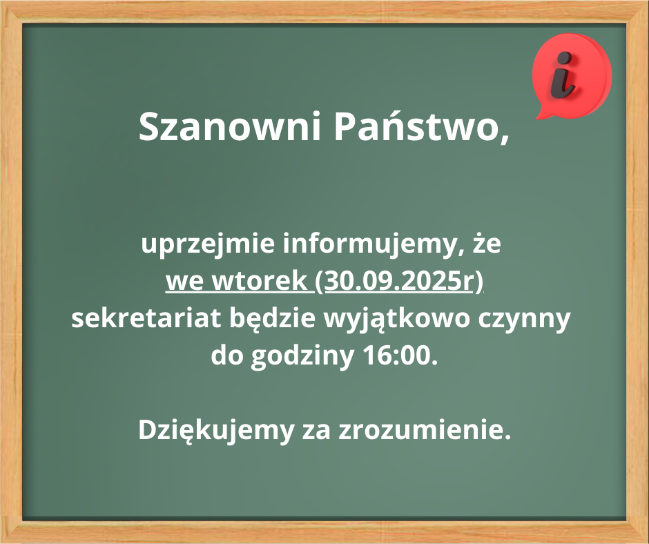 Godziny pracy sekretariatu we wtorek 30.09.2025r.